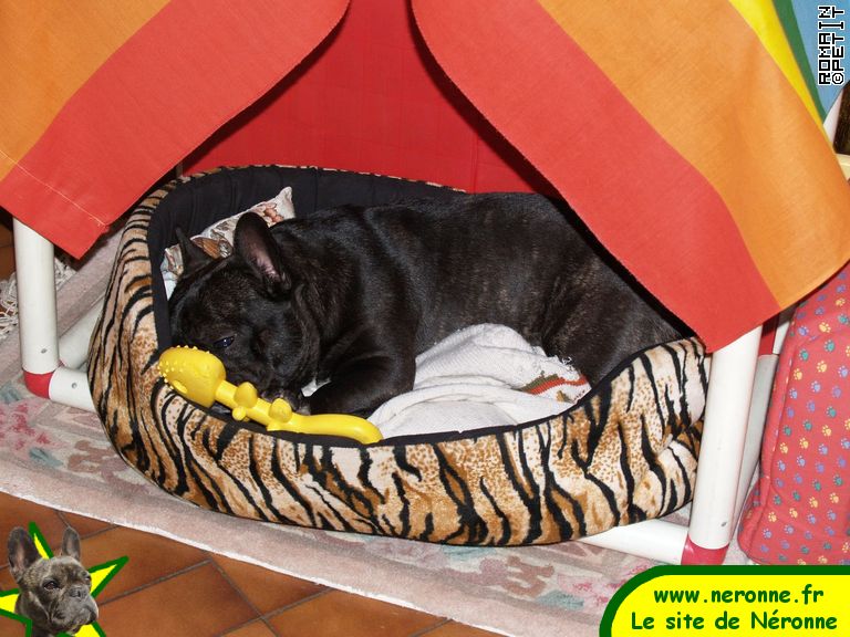 Quelques heures après le départ des pôrents de Toth, ce dernier joue avec l'un des jouets de NéronnePuis va se coucher dans le panier de Néronne