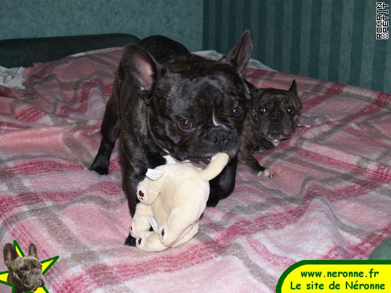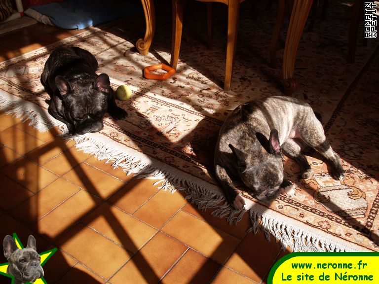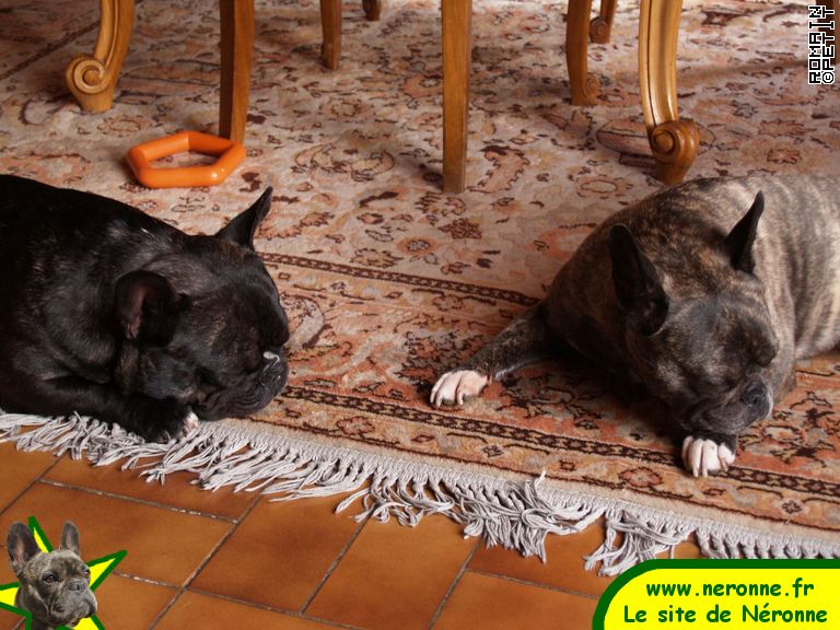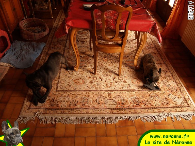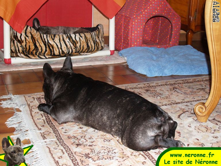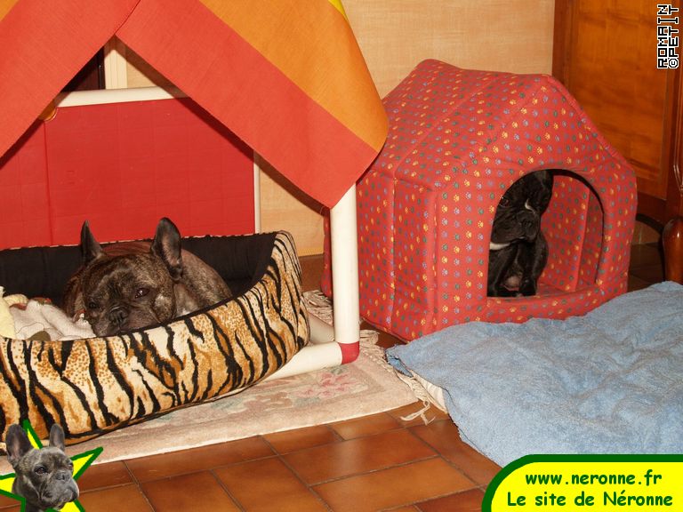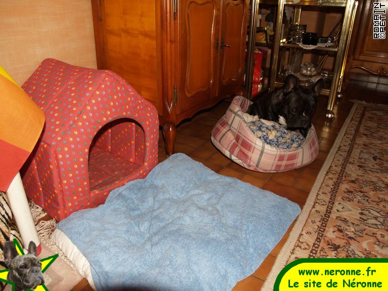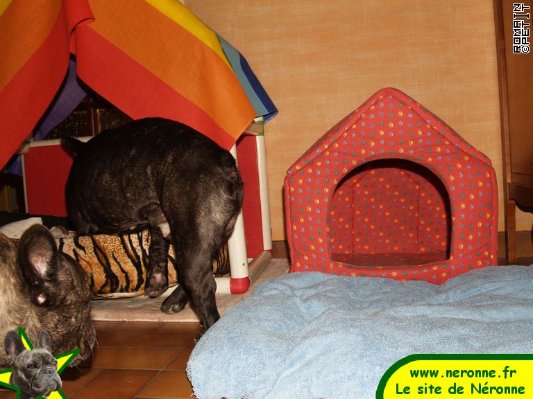 Toth est resté 20 secondes dans sa maisonettePendant que Néronne se lève pour me faire un bisous (et attirer mon attention tiens!), Toth en profite pour lui piquer son panier :-P au grand désarroi de Néronne