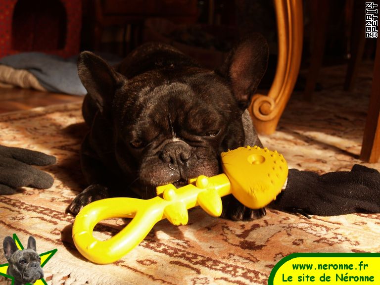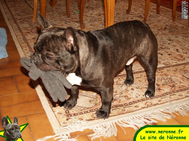 Lorsque Pôpa-Néronne rentre du travail Néronne aime aller chercher un objet (serviette, gant, jouet...) et lui ramener. Ainsi quelques fois elle a droit à un gant, Toth a désormais droit au sien ;)Môman-Néronne arrive