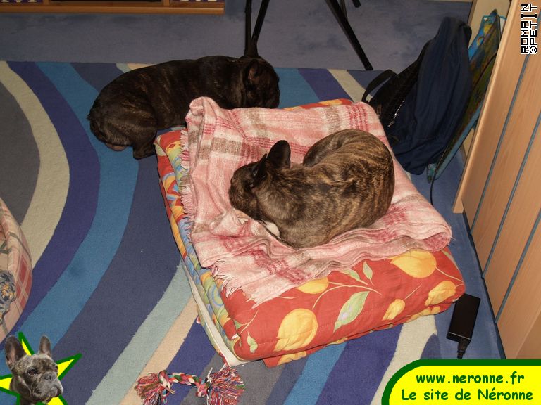 La nuit Toth n'avait pas le droit à mon lit canapé-lit, la journée il avait droit à mon canapé canapé-lit lolAh ces pots de colle. En plus à Néronne il lui faut son "trône" près de moi. Toth est quand même plus près de moi (aux pieds de ma chaise)