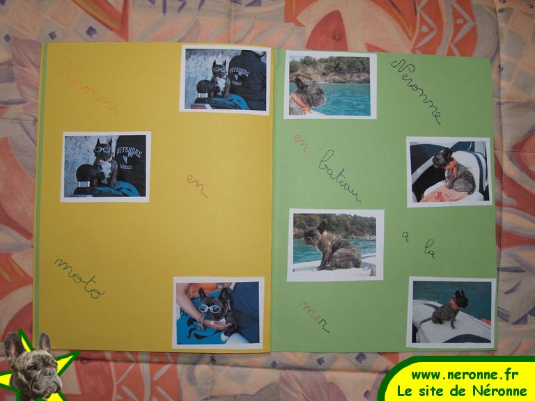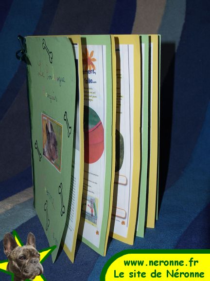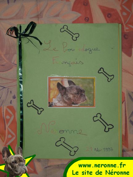 Maxence a réalisé cet exposé en s'appuyant sur ma revue de presse composée de plusieurs magazines consacrés au bouledogue français, et de photos de Néronne prises sur le site. Pour le dossier ont essentiellement été retenus les articles de Vos chiens junior, #1, 3ème trimestre 2006. Pour les photos de Néronne, celles en scooter où Néronne porte des lunettes ont fait sensation!