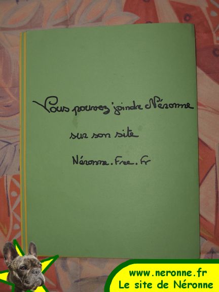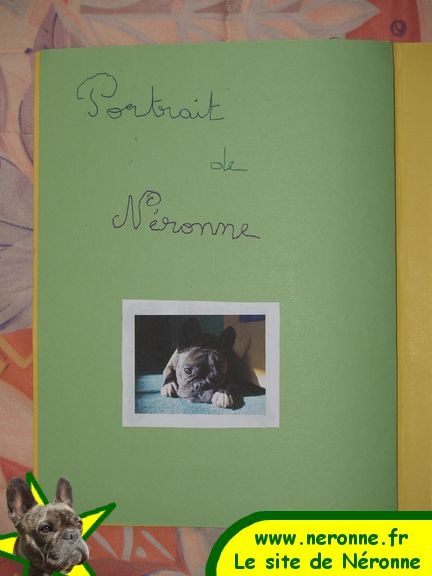 Il y a quelques semaines le bouledogue français en général, et surtout Néronne en particulier ont été le sujet d'un exposé par un jeune écolier, Maxence, âgé de 8 ans. Son institutrice avait demandé à chacun de faire un dossier, à soutenir oralement, sur leur animal favori. C'est donc évidemment sa cousine Néronne qui a été choisie par Maxence.
