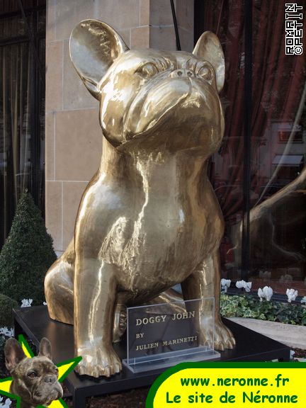 Enfin regardez ce qui est dit sur le site officiel de l'artiste Julien Marinetti à propos de Doggy John: "Parvenu tout comme nous à l’âge adulte, doggy John exhale une puissance, il a pris une stature et son empreinte marque le réel. Sa position est à ce titre explicite : assis sur son train arrière, la tête légèrement relevée, il est dans l’attente et écoute, prêt à questionner autant qu’à témoigner. Le Bouledogue a inspiré julien Marinetti justement parce qu’à ses yeux il incarne la sagesse du monde, celle de la vie animale. De lui émane une certaine idée des vertus humaines et créatrices, sagacité et mesure, compréhension de soi. Doggy John est un ami attentif et inspiré qui sous ses silences énigmatiques sait rester à l’écoute."