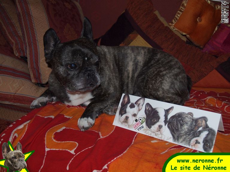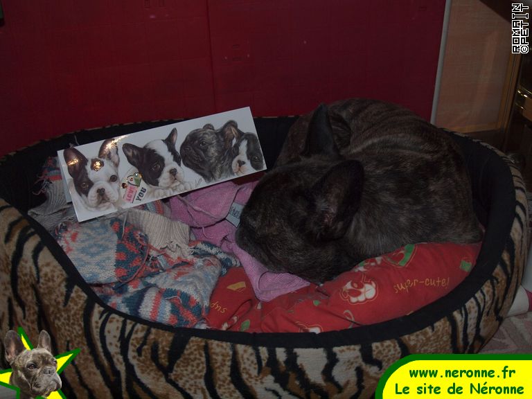 Ma famille se joint à moi pour remercier Velours et ses maîtres Marie-Luce et Maurice pour leurs gentilles attentions: une carte d'anniversaire qui alimente ma collection de cartes avec boulis et des messages sur les forums!