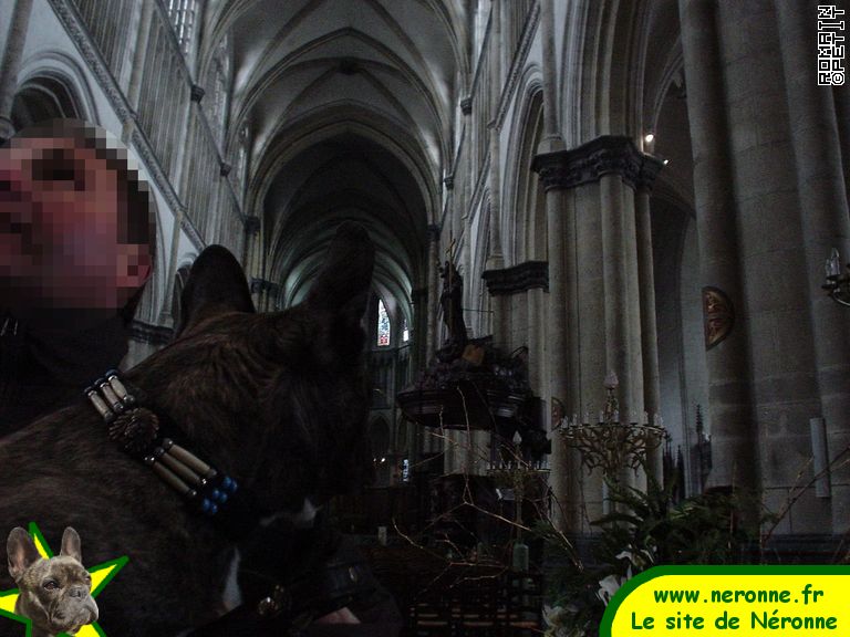 Ensuite nous marchons et passons devant la Cathédrale, mes parents décident d'y rentrer et moi d'attendre avec Néronne à l'extérieur. Le Sacristain qui est devant l'Eglise me demande "est-ce que le chien risque d'uriner dans l'Eglise", je lui répond non et lui nous répond que même si c'est interdit Néronne peut rentrer car il la trouve mignonne lol Nous acceptons car cela semblait tellement lui faire plaisir, l'occasion pour moi de prendre des photos insolites ;)